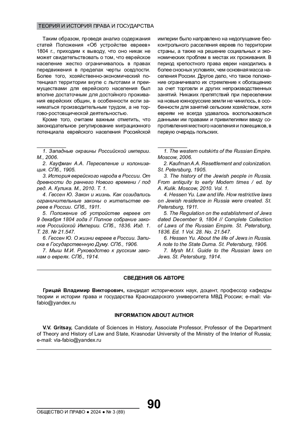 4. Гессен Ю. Закон и жизнь. Как созидались ограничительные законы о жительстве евреев в России. СПб., 1911.