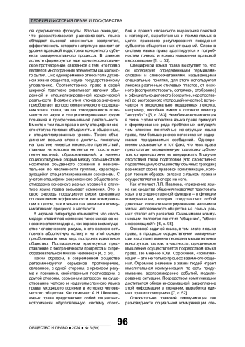 Статья: ЯЗЫК ПРАВА КАК ЭЛЕМЕНТ ПРАВОВОЙ КОММУНИКАЦИИ СОВРЕМЕННОГО РОССИЙСКОГО ОБЩЕСТВА (2024)