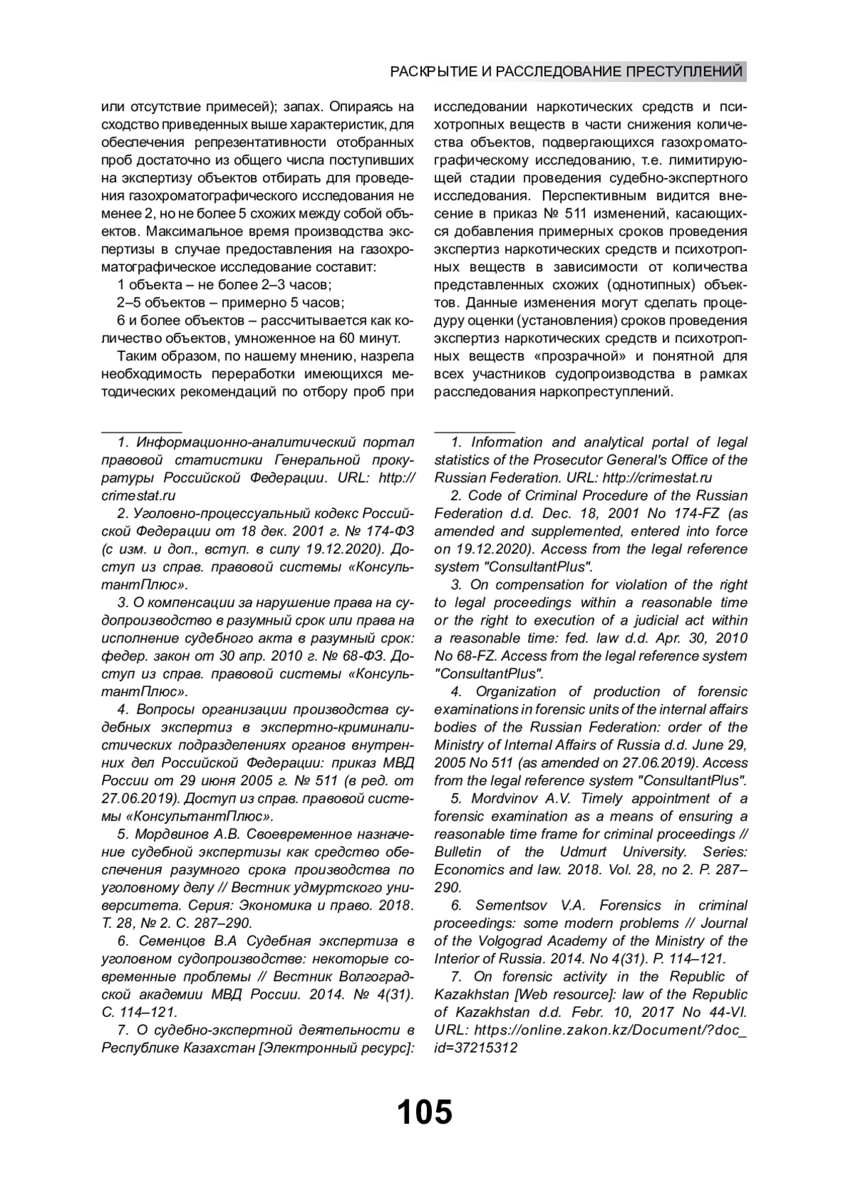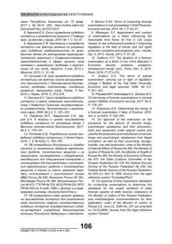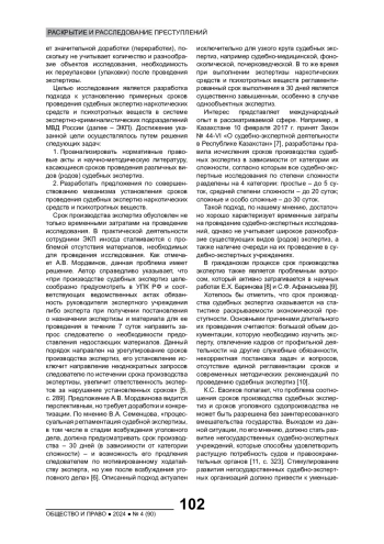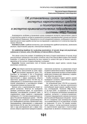 Статья: ОБ УСТАНОВЛЕНИИ СРОКОВ ПРОВЕДЕНИЯ ЭКСПЕРТИЗ НАРКОТИЧЕСКИХ СРЕДСТВ И ПСИХОТРОПНЫХ ВЕЩЕСТВ В ЭКСПЕРТНО-КРИМИНАЛИСТИЧЕСКИХ ПОДРАЗДЕЛЕНИЯХ СИСТЕМЫ МВД РОССИИ (2024)