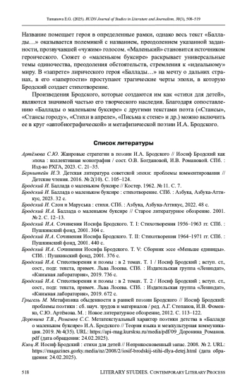 18. Полторацкая А.Ю. Поэзия И.А. Бродского и русская балладная традиция: автореф. дис. … канд. филол. наук: спец. 10.01.01 “Русская литература”. Саранск, 2019. 252 с.