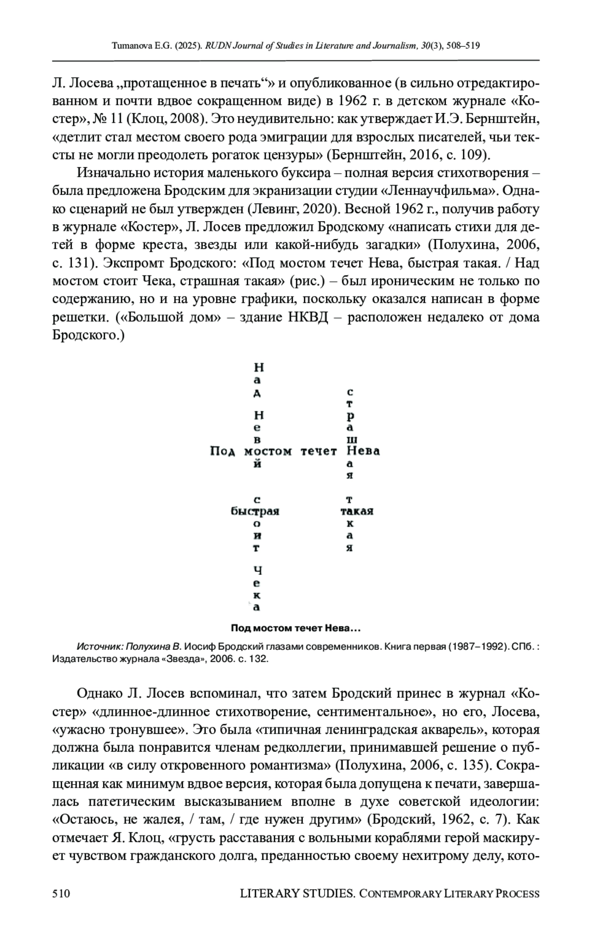 6. Бродский И.А. Баллада о маленьком буксире // Старое литературное обозрение. 2001. № 2. С. 12-13.
