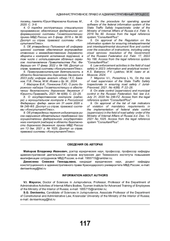 7. Майоров В.И., Понежина Л.Ю. О роли дорожного надзора Госавтоинспекции в обеспечении безопасности дорожного движения // Юристъ-Правоведъ. 2021. № 4(99). С. 22-28. EDN: FOEGNK