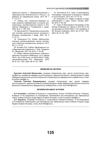 4. Бочкарева Е.А., Соловьева С.В. Обжалование действий и решений органов, наделенных публичными полномочиями, в вышестоящую судебную инстанцию // Российское правосудие. 2021. № 8. С. 12-18. EDN: BIDSJG