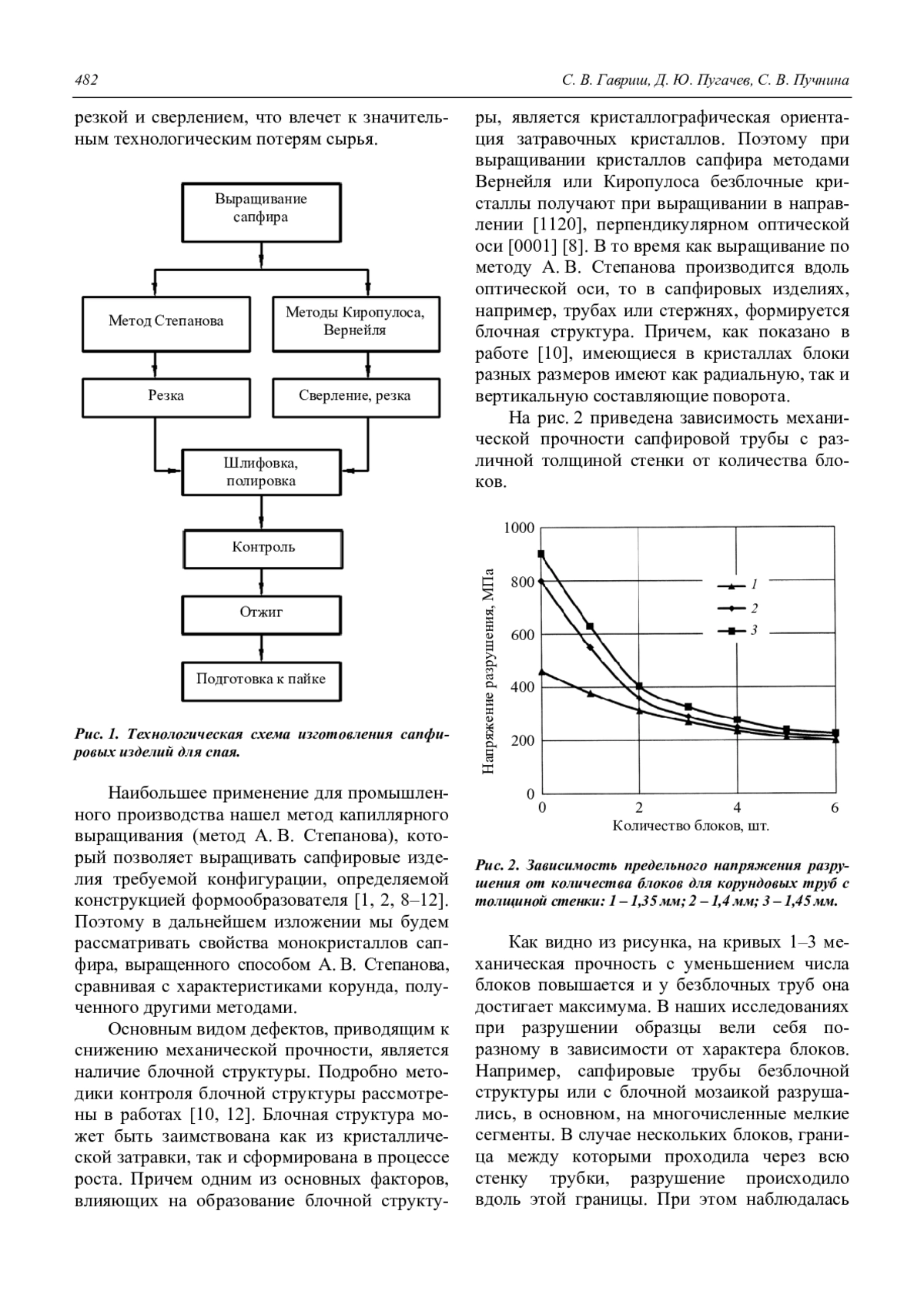 Статья посвящена рассмотрению особенностей получения вакуумноплотных спаев сапфира с металлами. Выявлено влияние на механическую прочность профилированного сапфира количества блоков и угла разориентации их границ, обоснована температурная зависимость предельного напряжения разрушения труб, проанализированы причины появления огранки у выращенного кристалла, влияние механической обработки (шлифовки и полировки) и высокотемпературного отжига на внутренние напряжения. Показано, что для получения надежного токоввода в сапфировую разрядную трубку, наполненную плазмообразующей средой на основе паров щелочного металла необходимо использовать сплав ниобия НбЦу и стеклокерамический припой на основе системы окислов CaO–Al2O3. Подробно исследованы структурные изменения в сплавах ниобия и в слое стеклокерамического припоя при различных температурах пайки, распределение концентрации ниобия в переходной зоне, выявлен оптимальный режим пайки стеклоцементом. Рассмотрен новый способ получения спая сапфира с металлом комбинацией методов предварительной металлизации и активной пайки. Реализация предложенного способа получения спая осуществляется посредством использования двух магнетронов с медной и титановой мишенями. Разработана математическая модель магнетронного напыления покрытий на вращающийся цилиндрический образец. Проанализирован механизм взаимодействия титана с сапфиром, рассмотрены результаты исследований процессов в глубине слоя металлизации и на границе с сапфиром при пайке медным припоем.