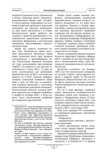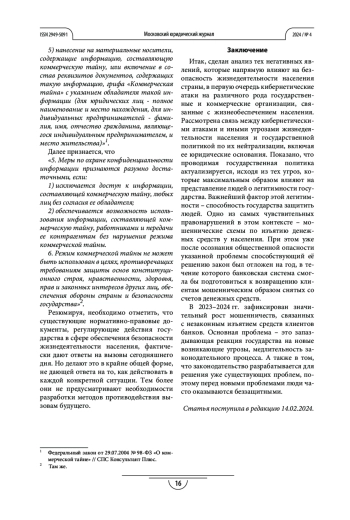 Процедура и методы. Исследованы совершенные в последнее время кибератаки и иные мошеннические действия со стороны злоумышленников, а также вызовы, возникшие в 2022–2024 гг., в связи с ухудшением отношений России и стран западного мира. Использованы методы системного анализа и экспресс-анализа. В качестве источников привлекаются документы с официальных сайтов: Центрального банка, Министерства чрезвычайных ситуаций Российской Федерации, президента РФ, иные источники.