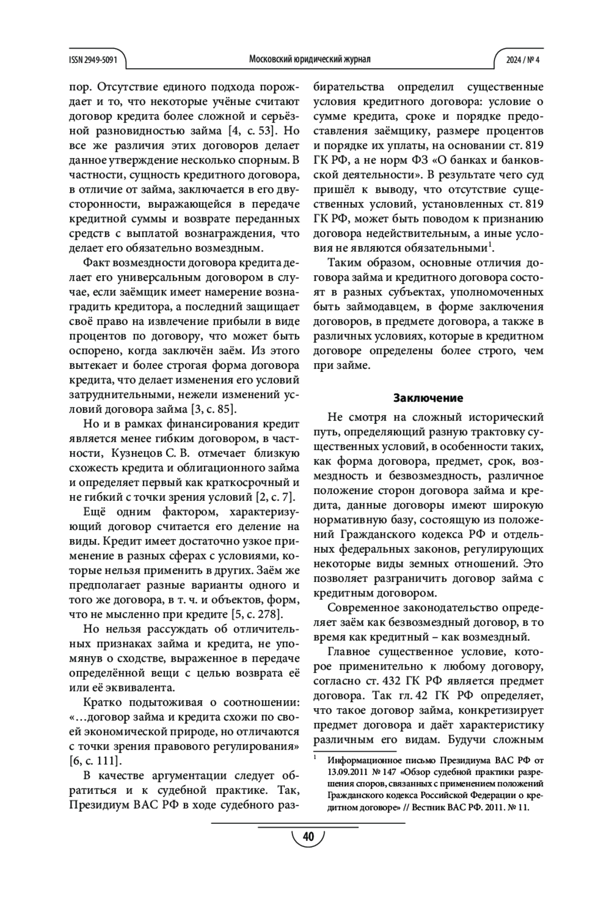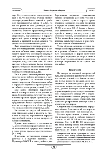 6. Угольнов Д. В. Кредитный договор и договор займа: сравнительный анализ // International Journal of Humanities and Natural Sciences. 2023. Vol. 1-3. C. 110-112/