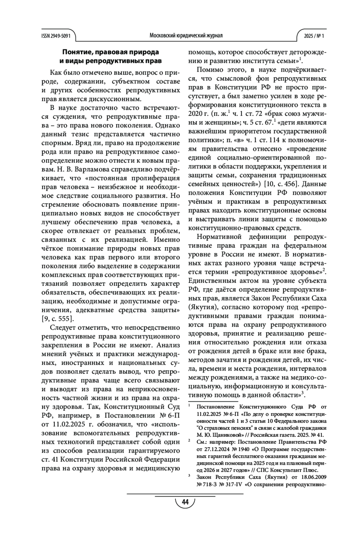 2. Репродуктивные права человека: понятие, правовая природа, сущность / Д. Г. Василевич, С. В. Потапенко, В. В. Гончаров, М. С. Савченко // Право и государство: теория и практика. 2025. № 1. С. 149-152.