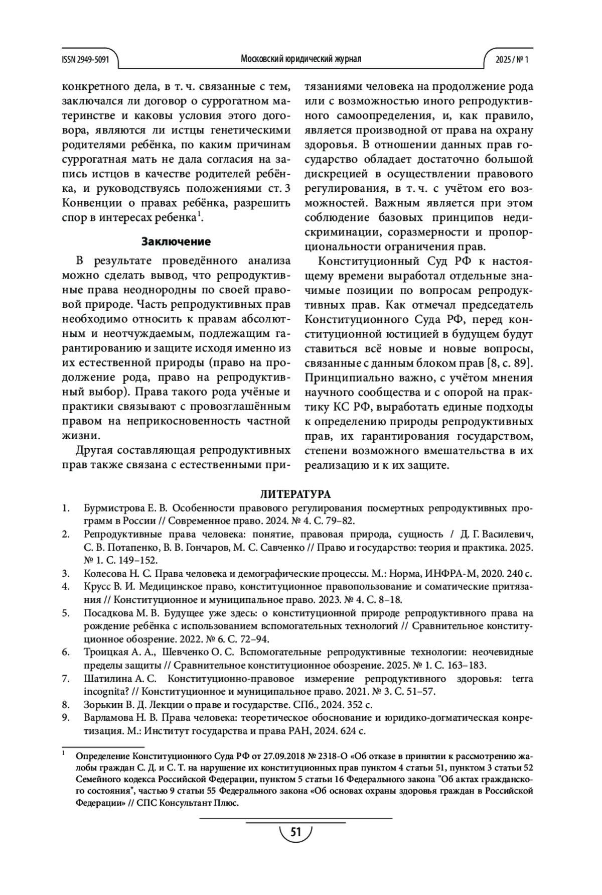 7. Шатилина А. С. Конституционно-правовое измерение репродуктивного здоровья: terra incognita? // Конституционное и муниципальное право. 2021. № 3. С. 51-57.
