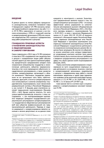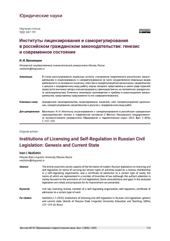 В статье рассматриваются отдельные аспекты становления современного российского законодательства о лицензировании и саморегулировании (в части осуществления отдельных видов деятельности на основании лицензии, членства в саморегулируемой организации, свидетельства о допуске к определенному виду работ), нормы которого представлены в целом ряде отраслей права (хотя внимание автора сконцентрировано, преимущественно, на положениях гражданского законодательства). Отмечены некоторые противоречия и пробелы в анализируемом законодательстве, представлены предложения по его совершенствованию.