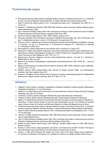 17. Гаврила А. Концептуальные основы внешней политики Румынии (1989-2007) // Вопросы науки и образования. 2017. № 4. С. 45-46. EDN: YUPYAB