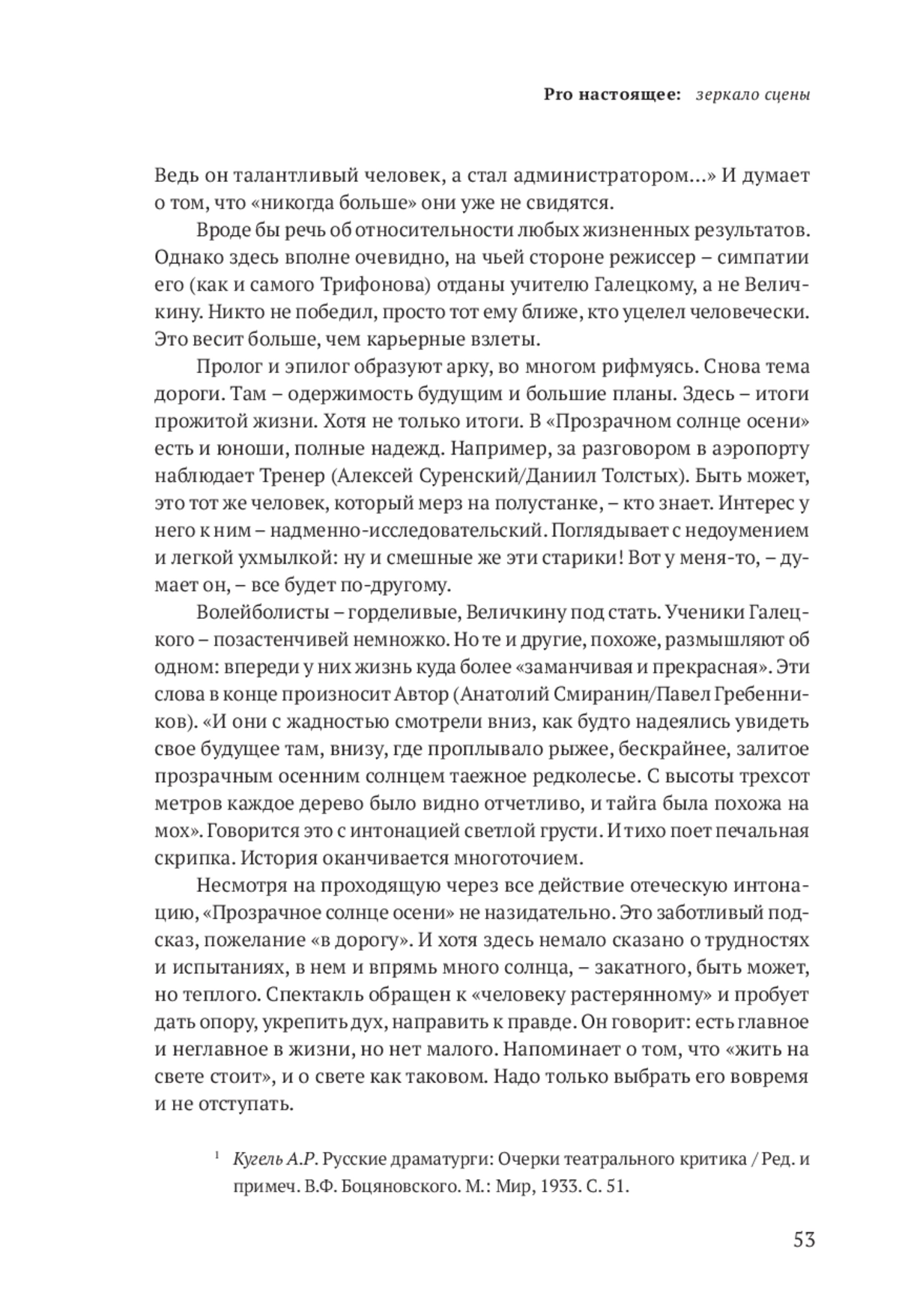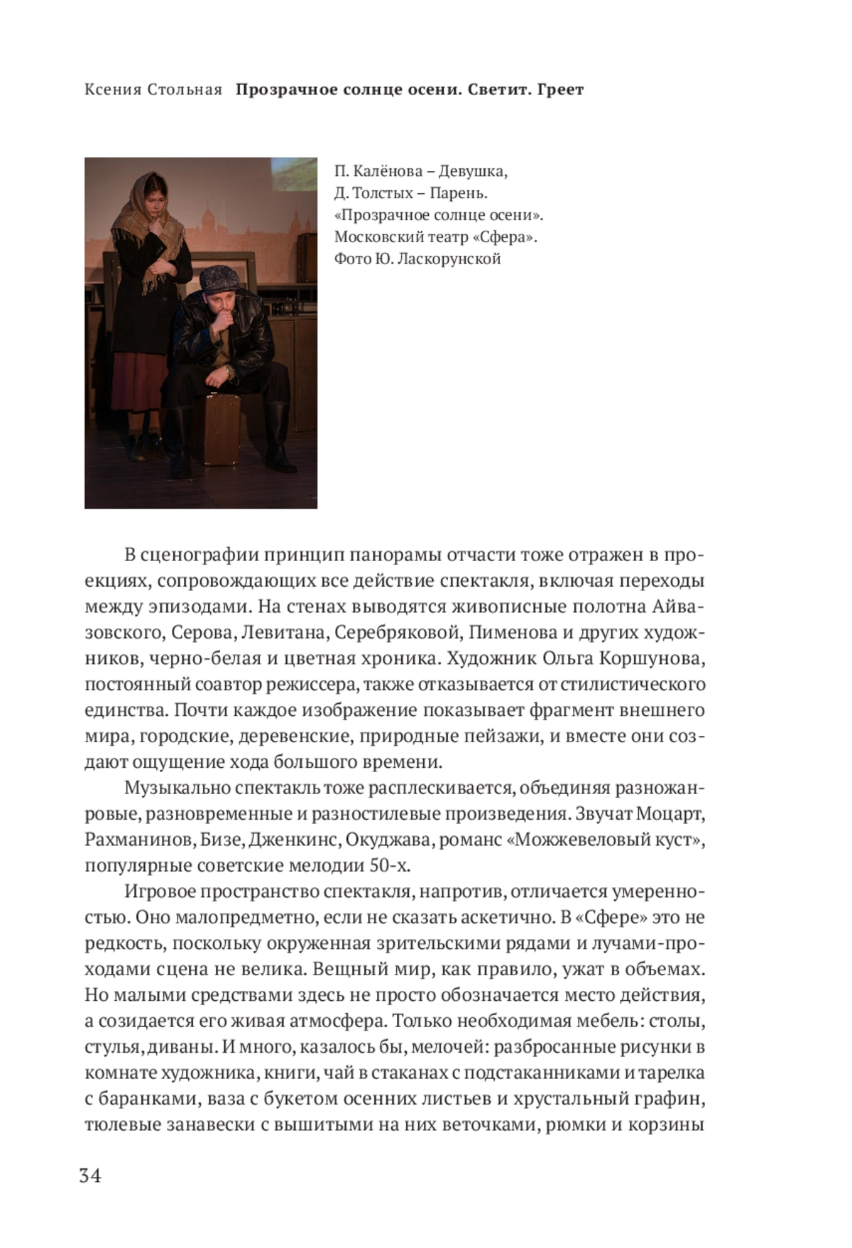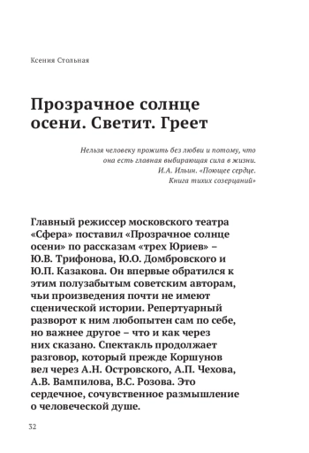 СТОЛЬНАЯ К. Е. ПРОЗРАЧНОЕ СОЛНЦЕ ОСЕНИ. СВЕТИТ. ГРЕЕТ // ВОПРОСЫ ТЕАТРА. 2024. № 1-2
