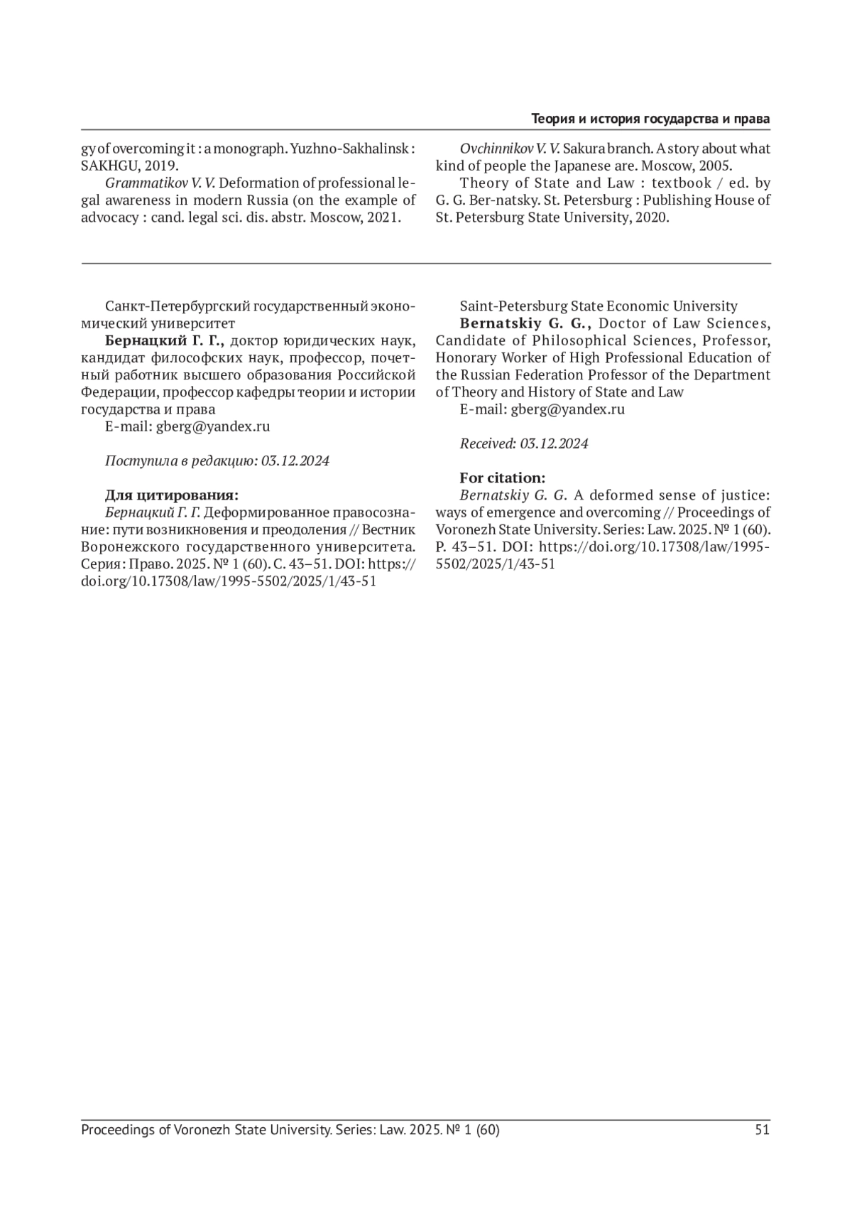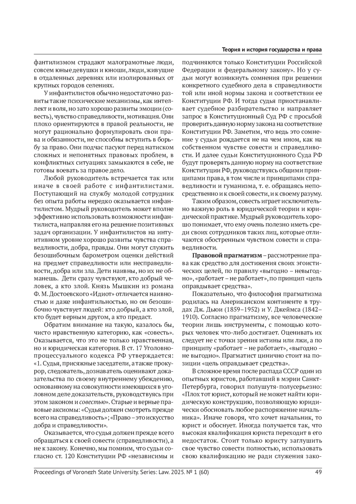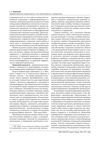 В статье рассматривается деформированное правосознание как искаженное сознание. Деформация правосознания возникает вследствие осознания правовой реальности в крайностях - доведения правовых явлений до максимума или, наоборот, сведения их к нулю. Выделяется восемь форм деформированного правосознания, которые сосуществуют парами, как противоположные крайности: 1) правовой нигилизм и правовой идеализм; 2) правовой педантизм и правовой дилетантизм; 3) правовой конформизм и правовой нонконформизм; 4) правовой инфантилизм и правовой прагматизм. В статье указаны обстоятельства, при которых деформированное правосознание может играть позитивную роль.