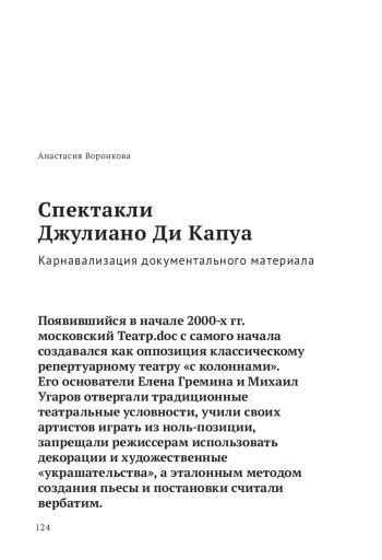 ВОРОНКОВА А. СПЕКТАКЛИ ДЖУЛИАНО ДИ КАПУА // ВОПРОСЫ ТЕАТРА. 2024. № 1-2