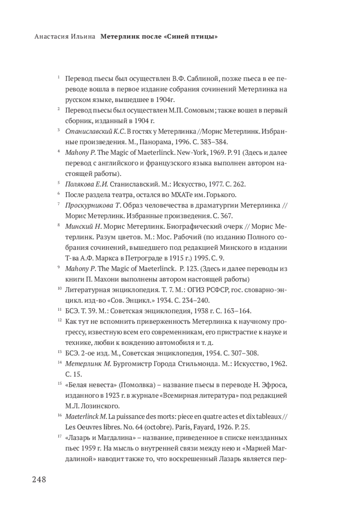 1. Станиславский К.С. В гостях у Метерлинка //Морис Метерлинк. Избранные произведения. М., Панорама, 1996. С. 383-384.