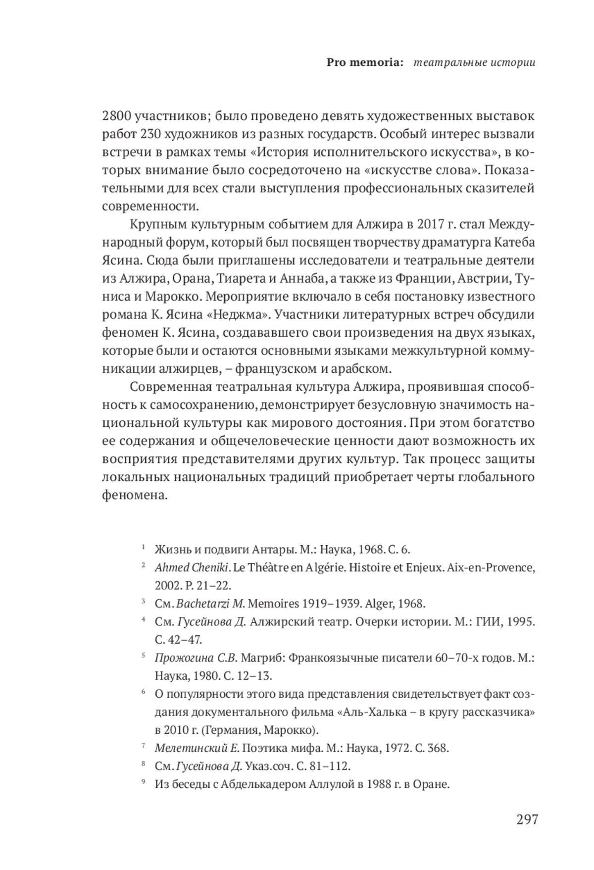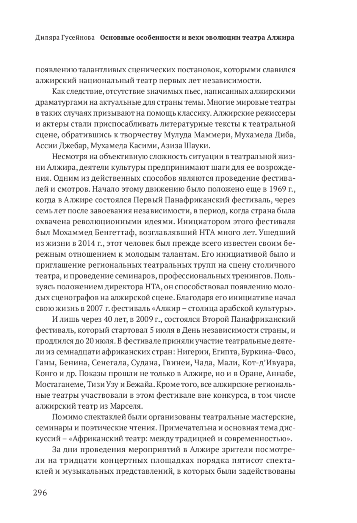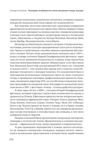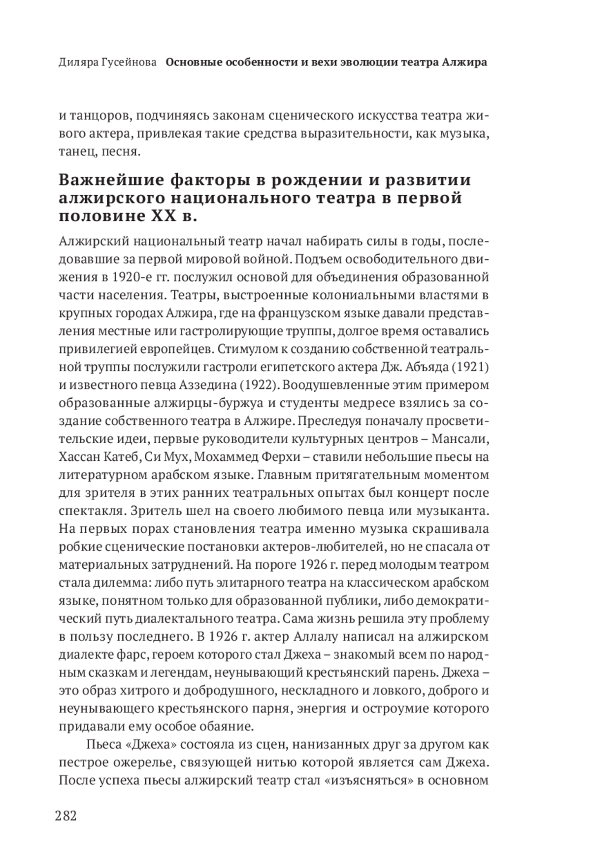 ГУСЕЙНОВА Д. А. ОСНОВНЫЕ ОСОБЕННОСТИ И ВЕХИ ЭВОЛЮЦИИ ТЕАТРА АЛЖИРА // ВОПРОСЫ ТЕАТРА. 2024. № 1-2