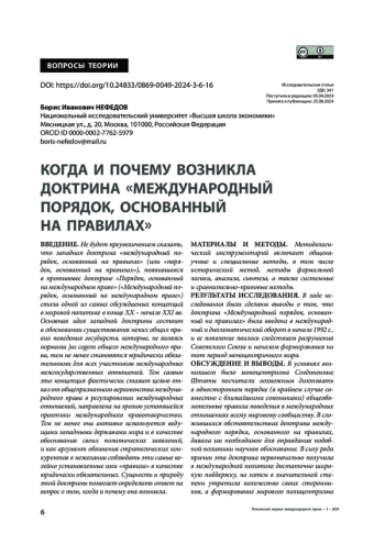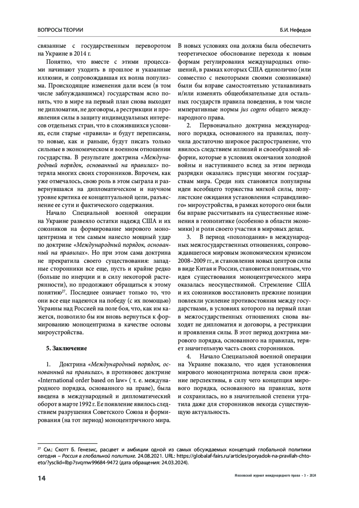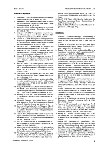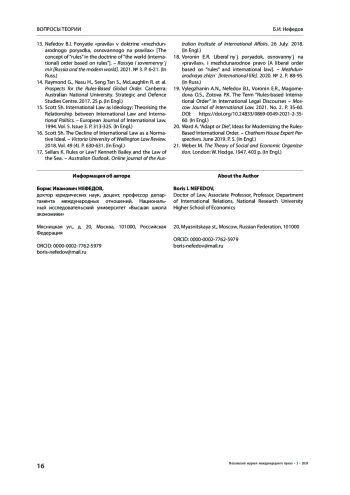 7. Нефедов Б.И. 2021. Понятие «правила» в доктрине «международного порядка, основанного на правилах». - Россия и современный мир. № 3. С. 6-21.