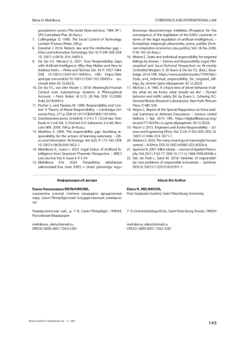 15. Melnikova E., Surov I. 2023. Legal Status of Artificial Intelligence from Quantum-Theoretic Perspective. - BRICS Law Journal. Vol. X. Issue 4. Р. 5-34.