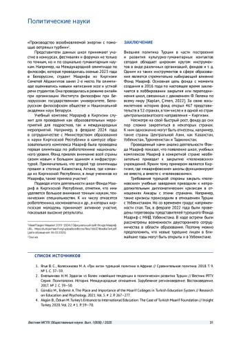 3. Gündüz M., Erdemir A. The Place and Importance of the Maarif Colleges in Turkish Education System // Research on Education and Psychology. 2021. Vol. 5. # 2. P. 267-277. EDN: TSVZGG