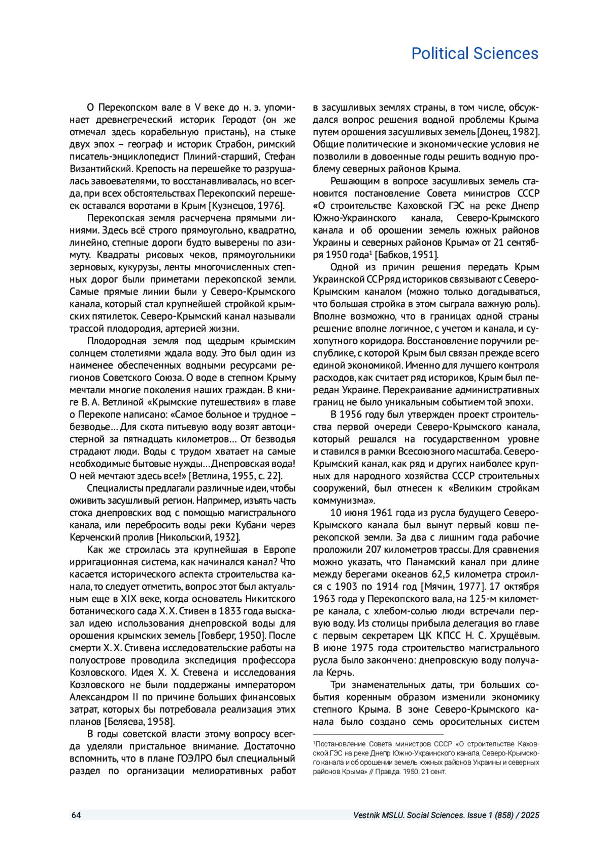 7. Бабков И. И. Южно-Украинский и Северо-Крымский канал, и их влияние на преобразование природы. Л.: [б. и.], 1951.