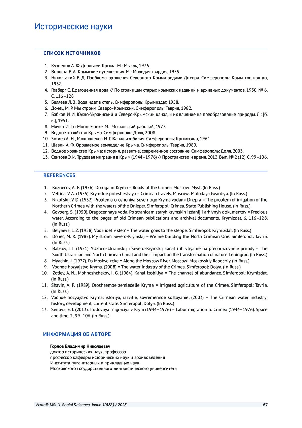 3. Никольский В. Д. Проблема орошения Северного Крыма водами Днепра. Симферополь: Крым. гос. изд-во, 1932.