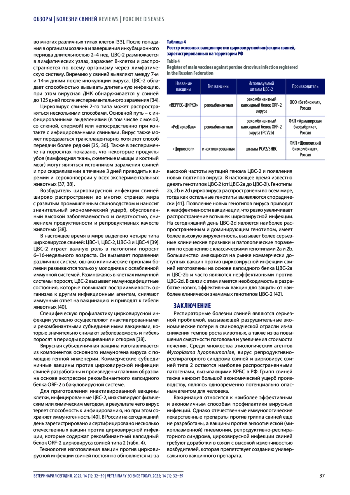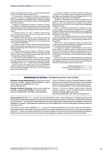38. Гринь С. А., Матвеева И. Н., Богомолова О. А., Федоров Ю. Н., Попова В. М., Крюкова Е. Н., Литенкова И. Ю. Цирковирусная инфекция свиней 2-го типа и антигенная активность вакцины против этой инфекции. Ветеринария. 2019; (12): 20-26. DOI: 10.30896/0042-4846.2019.22.12.20-26