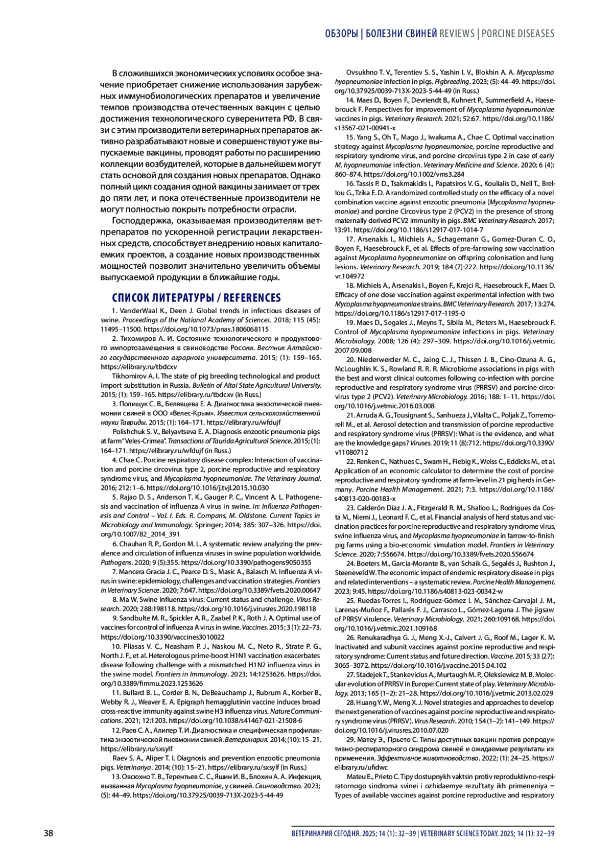 13. Овсюхно Т. В., Терентьев С. С., Яшин И. В., Блохин А. А. Инфекция, вызванная Mycoplasma hyopneumoniae, у свиней. Свиноводство. 2023; (5): 44-49. DOI: 10.37925/0039-713X-2023-5-44-49