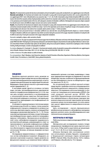 Статья: Функционально-метаболическая активность нейтрофилов у молодняка крупного рогатого скота, сенсибилизированного неагглютиногенным штаммом бруцелл (2025)