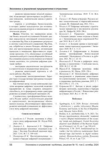 2. Дынкин А. А., Барковский А. Н. Цифровая трансформация экономики: тенденции и вызовы // Вестник Российской академии наук. 2021. Т. 91. № 7. С. 599-610.