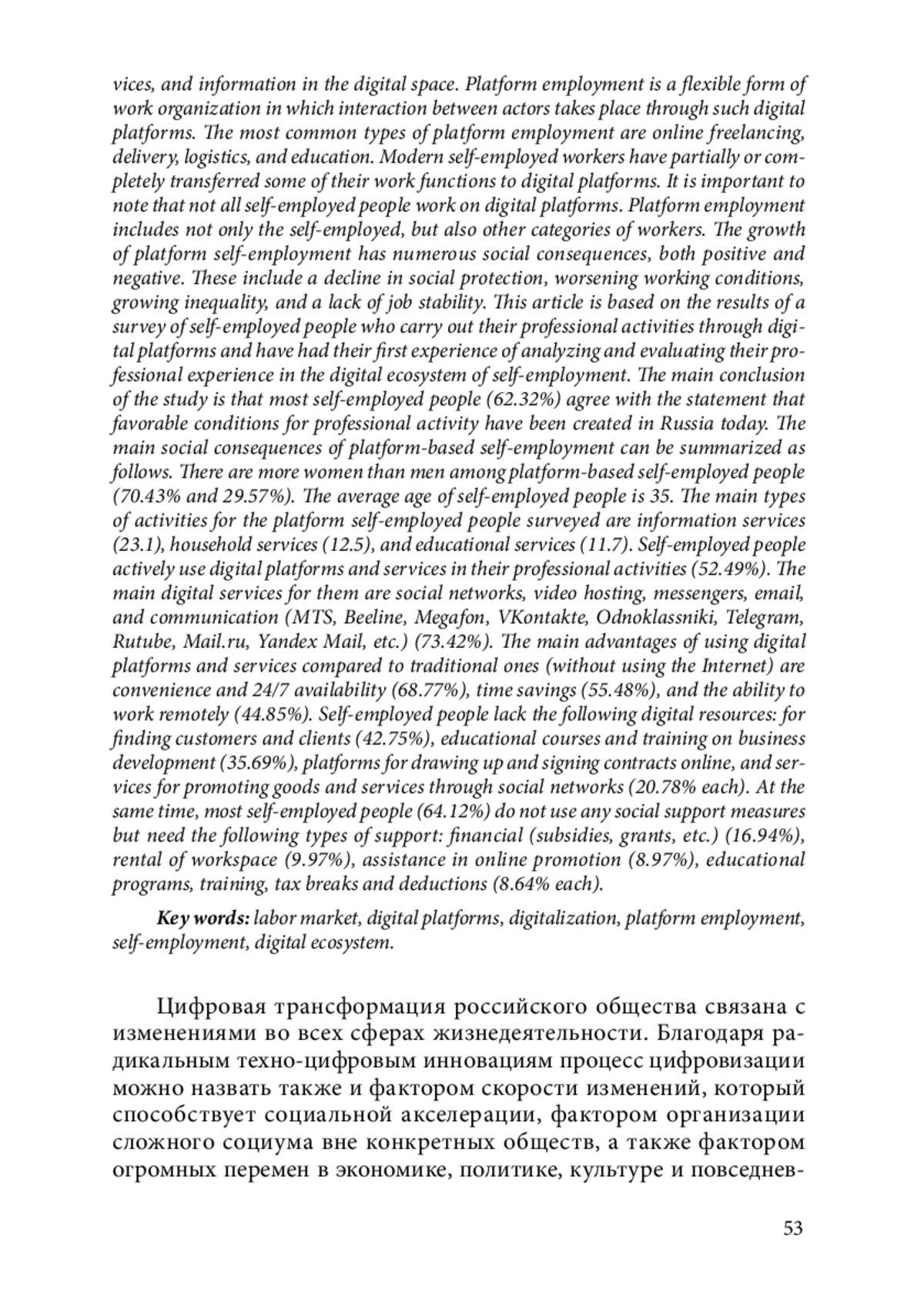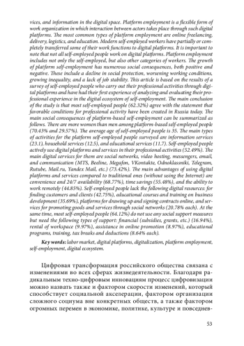 Ключевые фразы: рынок труда, ЦИФРОВЫЕ ПЛАТФОРМЫ, цифровизация, ПЛАТФОРМЕННАЯ ЗАНЯТОСТЬ, самозанятость, цифровая экосистема