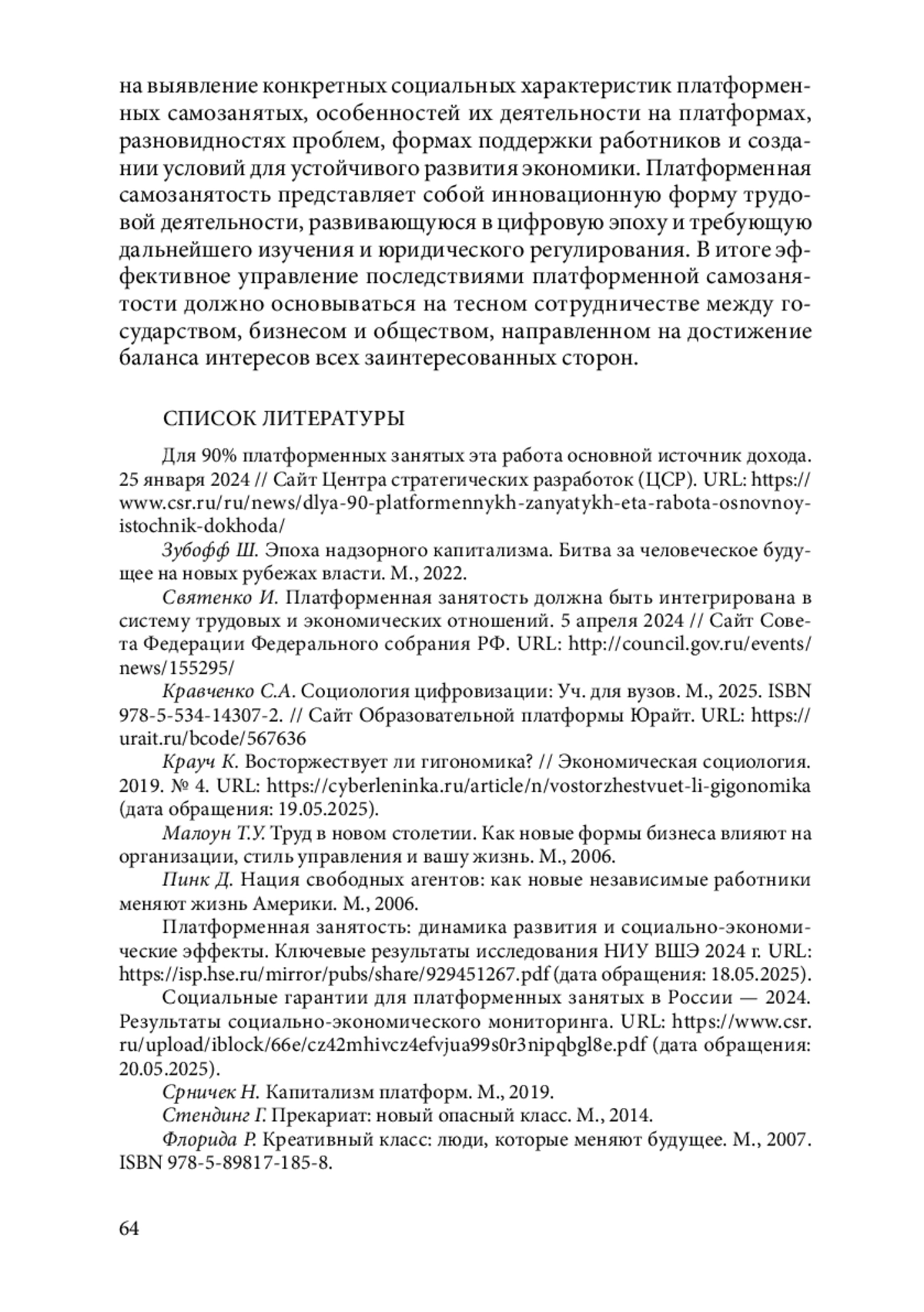 Статья: Социальные последствия платформенной самозанятости (2025)