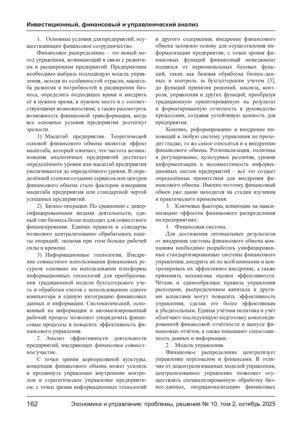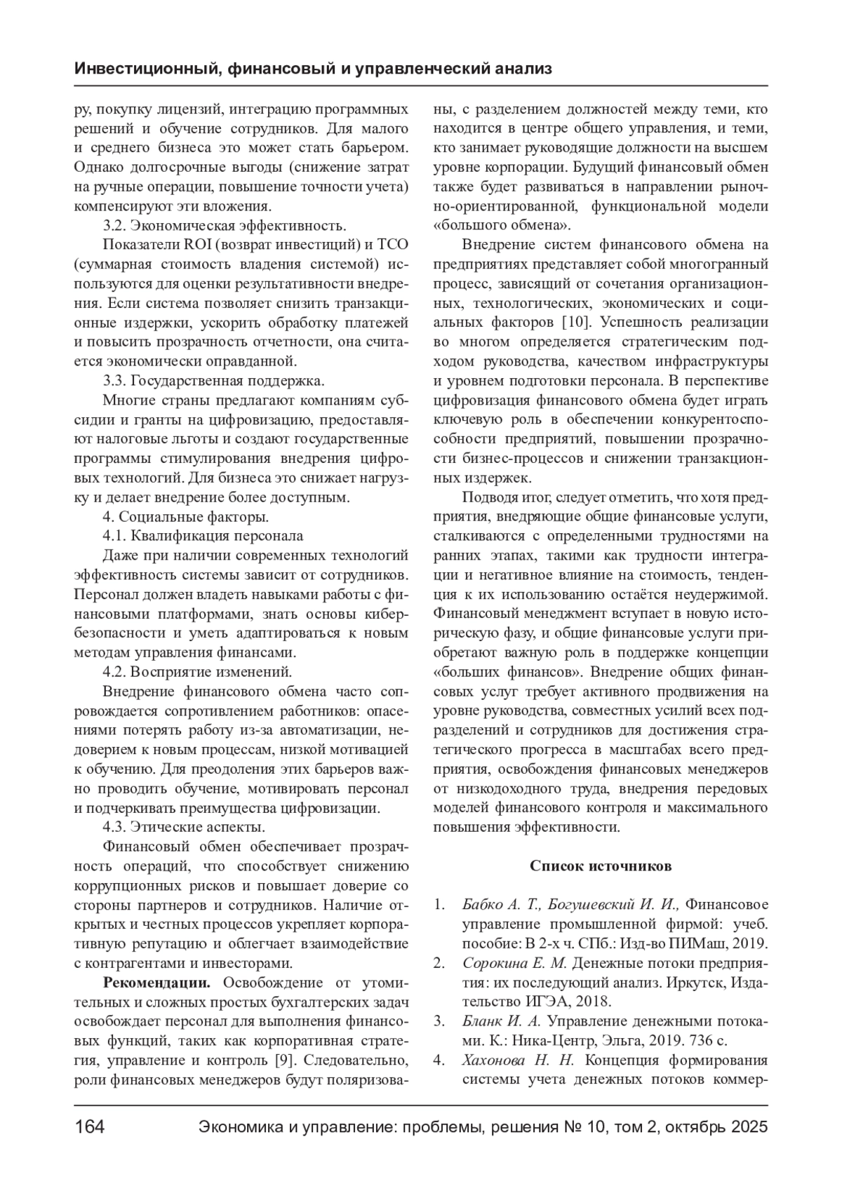 ТАТОСОВ С. С. АНАЛИЗ КЛЮЧЕВЫХ ФАКТОРОВ, ВЛИЯЮЩИХ НА ВНЕДРЕНИЕ ФИНАНСОВОГО ОБМЕНА НА ПРЕДПРИЯТИЯХ // ЭКОНОМИКА И УПРАВЛЕНИЕ: ПРОБЛЕМЫ, РЕШЕНИЯ. 2025. ТОМ 2 № 10