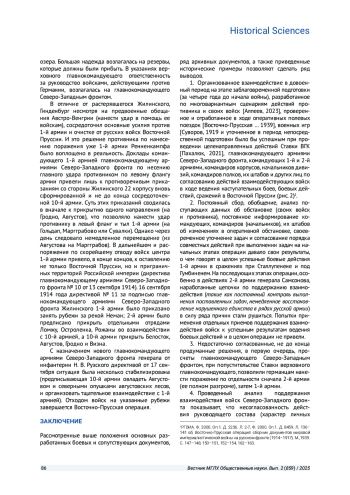 Статья: ВЗАИМОДЕЙСТВИЕ ВОЙСК СЕВЕРО-ЗАПАДНОГО ФРОНТА В ХОДЕ ВЕДЕНИЯ ВОСТОЧНО-ПРУССКОЙ ОПЕРАЦИИ В ПЕРВОЙ МИРОВОЙ ВОЙНЕ (2025)