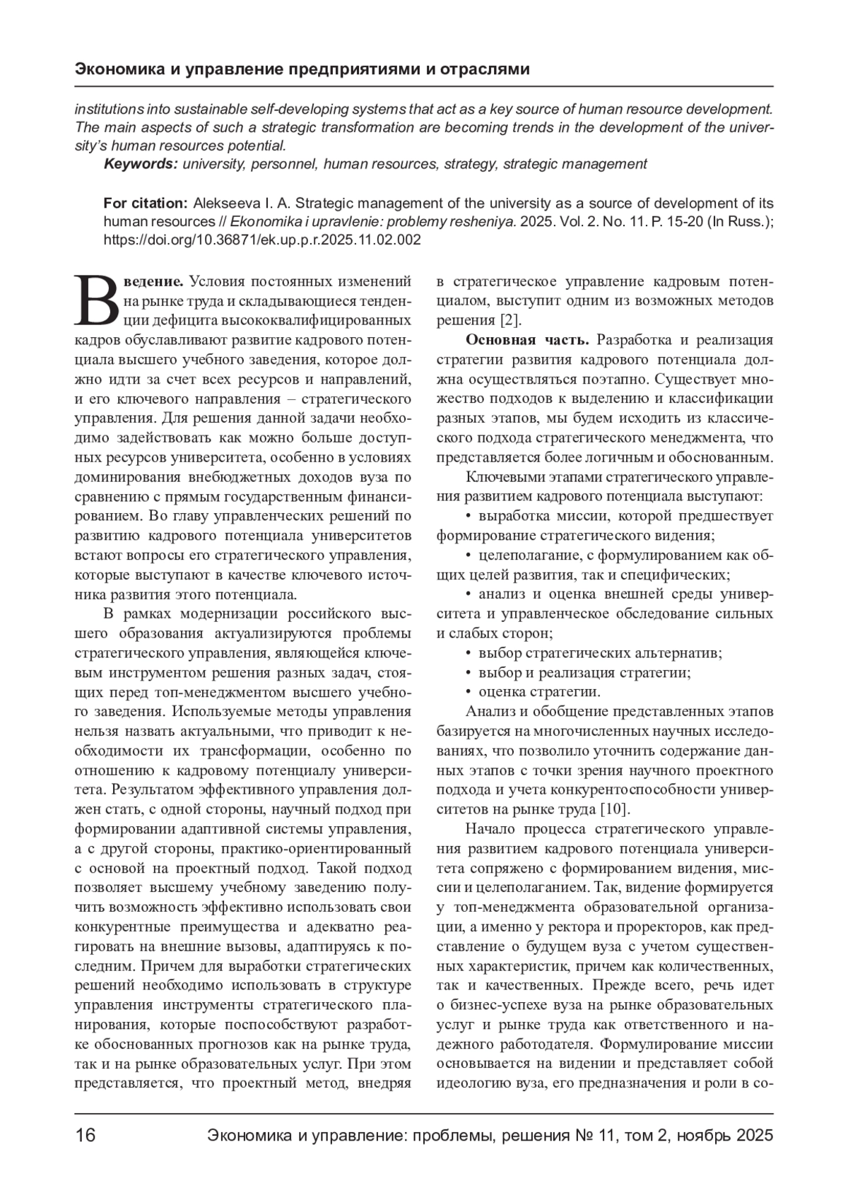 1. Алексеева И. А. Современные тренды в управлении научно-педагогическими кадрами // Экономика и управление: проблемы, решения. - 2025. - № 1. - Т. 11. - С. 107-112. EDN: CICBPW