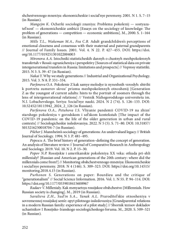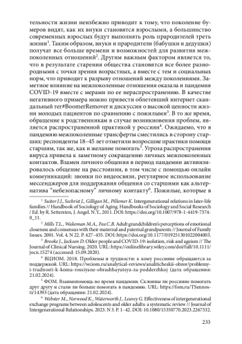 1. Гурко Т.А. Взаимопомощь поколений в городских семьях // Женщина в российском обществе. 2023. № 3. С. 43-58. https://doi.org/10.21064/WinRS.2023.3.4.
