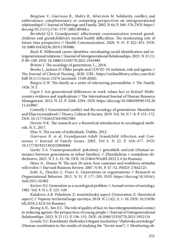 10. Саралиева З.Х., Судьин С.А., Янак А.Л. Прародительские отношения в современной российской семье: опыт пилотного исследования // Сборник тезисов докладов участников I Российско-Иранского социологического форума. М., 2020. С. 509-521.
