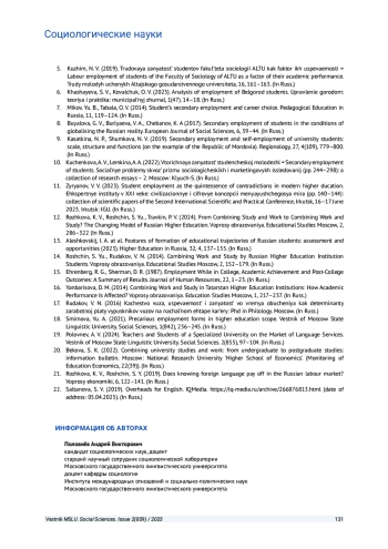 12. Рожкова К. В., Рощин С. Ю., Травкин П. В. От совмещения учебы с работой к совмещению работы с учебой? Изменение модели российского высшего образования // Вопросы образования. 2024. № 2. С. 286-322.
