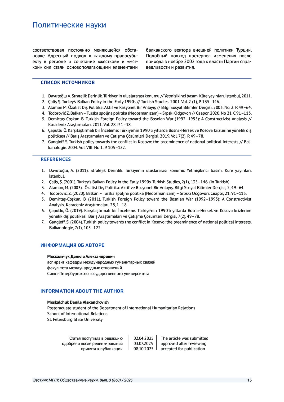 4. Todorović Z. Balkan - Turska spoljna polıtıka (Neoosmanızam) - Srpskı Odgovorı // Сварог. 2020. No 21. C 91-113.