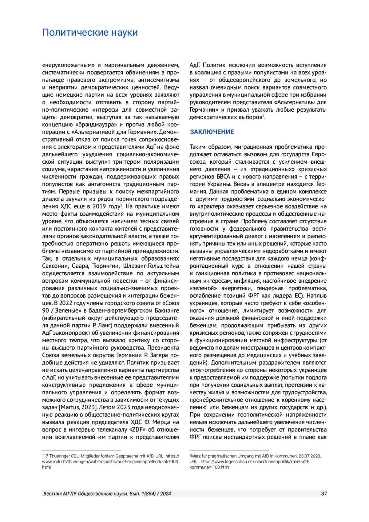 4. Martus Th. zusammenarbeit mit AfD: Warum Merz nicht ganz falsch liegt // Berliner Morgenpost. 24.07.2023. URL: https://www.morgenpost.de/politik/article239022175/afd-kommunen-zusammenarbeit-kooperation-rechtsex-trem.html.