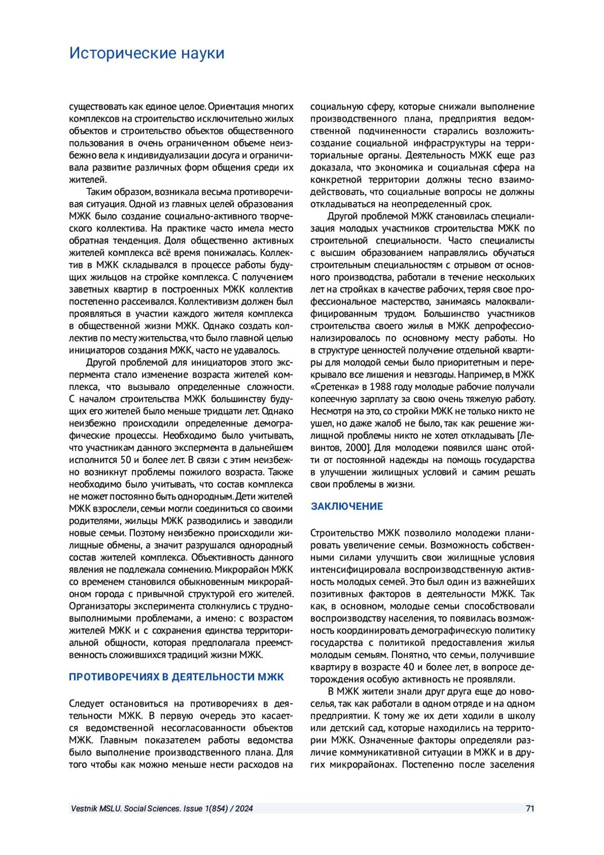 В статье рассматривается решение проблемы недостатка жилья появлением движения молодежных жилых комплексов в 1970-1980-е годы. В этом движении были задействованы частная инициатива трудящихся и экономические возможности предприятий, на которых они работали. Анализируется специфика молодежных жилых комплексов, которая способствовала концентрации на одной территории населения одной возрастной группы, а также основные принципы организации, противоречия в их деятельности.