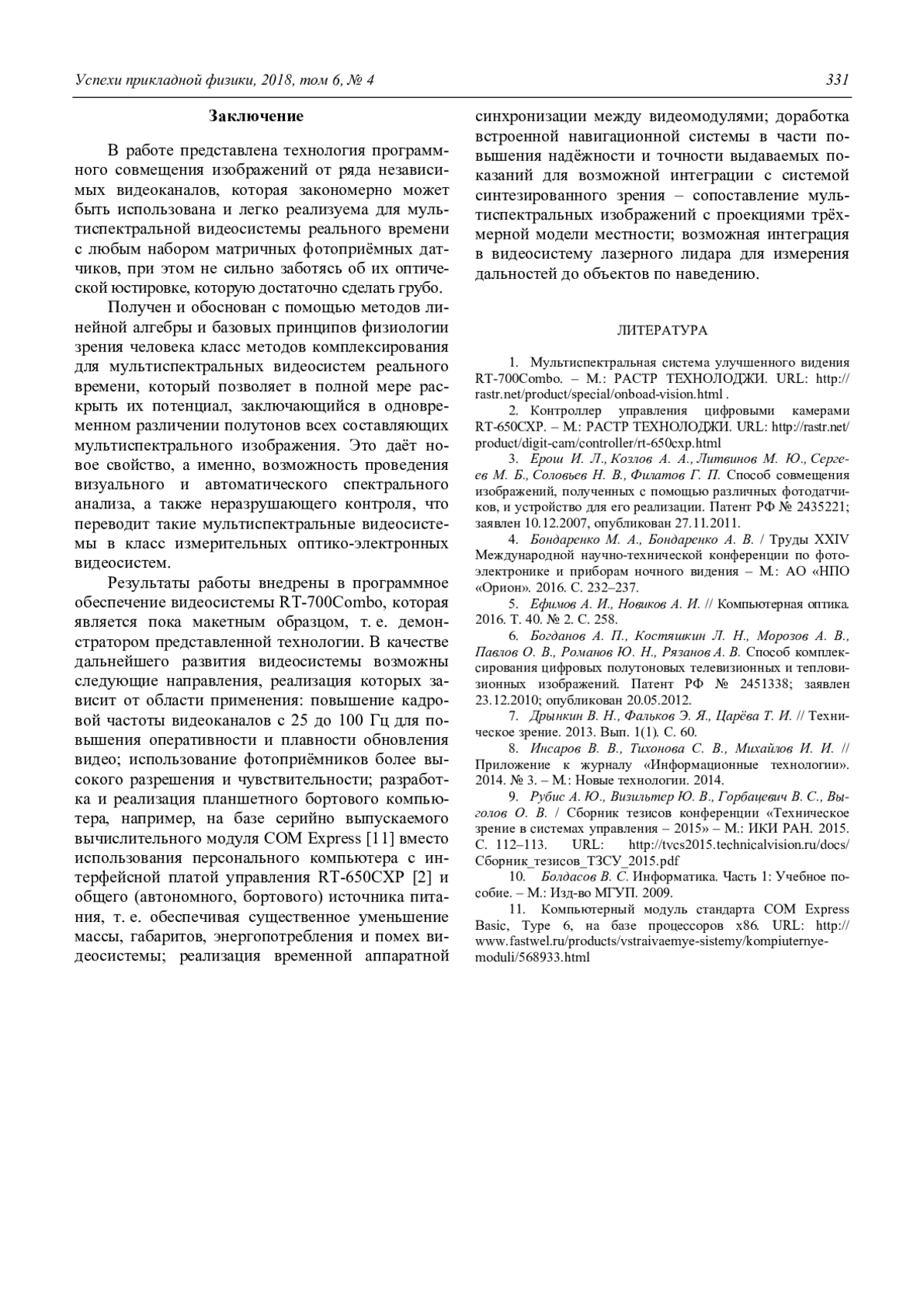 1. Мультиспектральная система улучшенного видения RT-700Combo. – М.: РАСТР ТЕХНОЛОДЖИ. URL: http://rastrr.net/product/special/onboad-vision.html .
