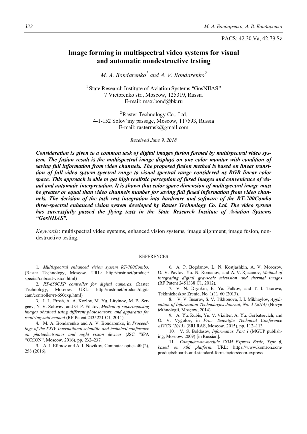 Бондаренко М. А., Бондаренко А. В. Формирование изображений в мультиспектральных видеосистемах для визуального и автоматического неразрушающего контроля 325