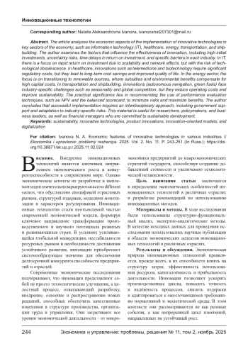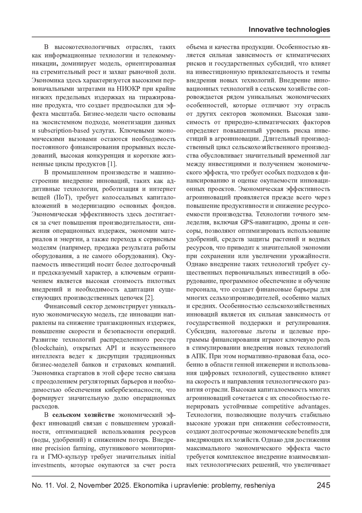 Статья: ЭКОНОМИЧЕСКИЕ ОСОБЕННОСТИ ИННОВАЦИОННЫХ ТЕХНОЛОГИЙ В РАЗЛИЧНЫХ ОТРАСЛЯХ (2025)