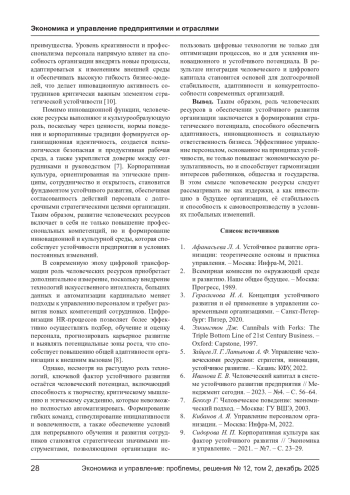 Современный этап развития мировой экономики характеризуется глубинными структурными преобразованиями, обусловленными глобализацией, цифровизацией и возрастающим вниманием к вопросам экологической и социальной ответственности бизнеса, что делает проблему устойчивого развития одной из ключевых в теории и практике управления организациями [1].