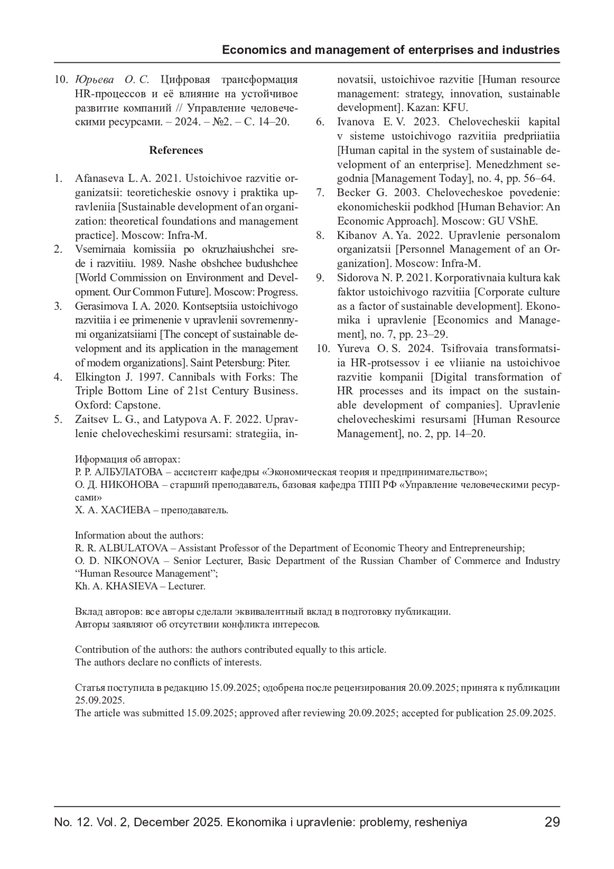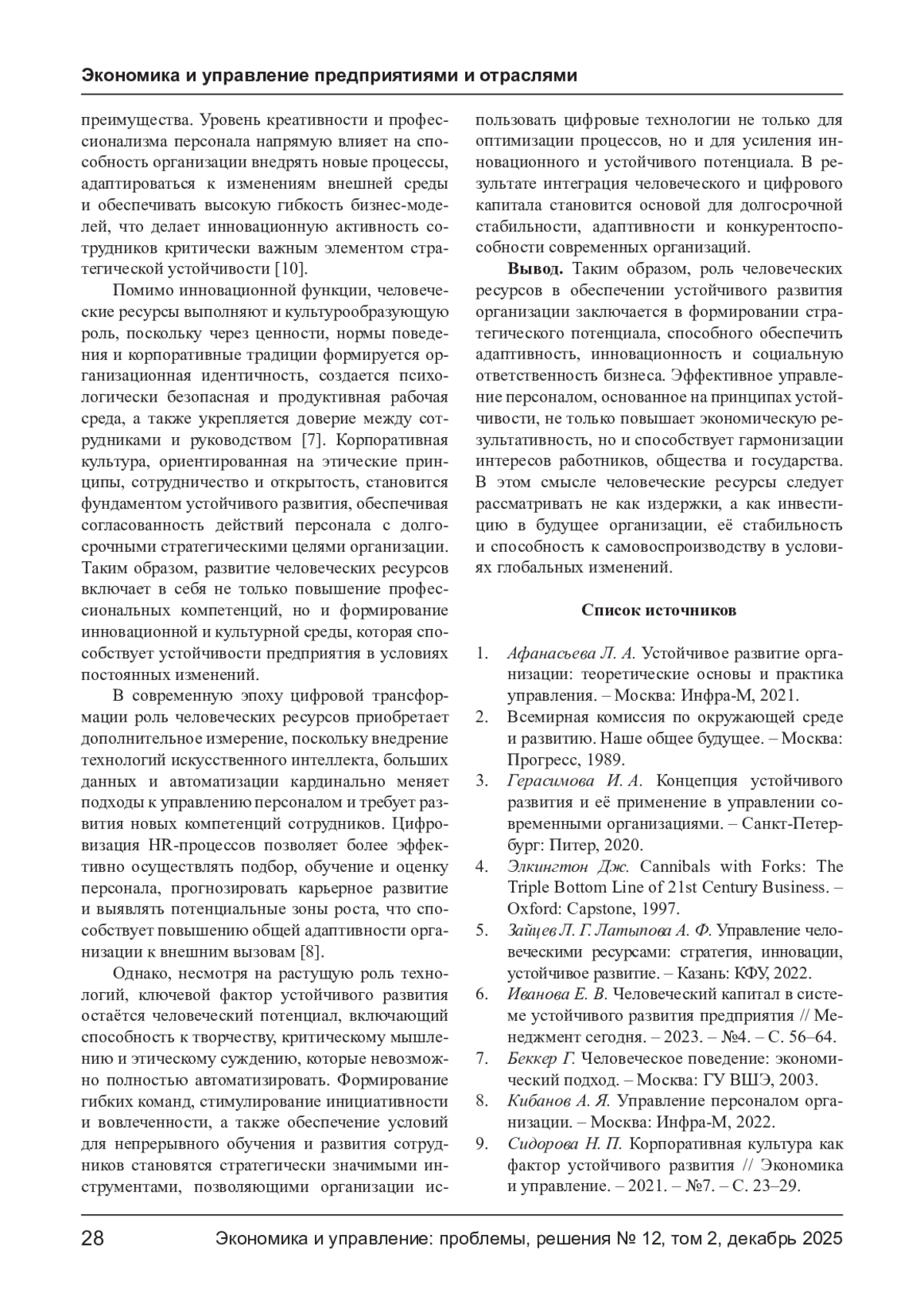 6. Иванова Е. В. Человеческий капитал в системе устойчивого развития предприятия // Менеджмент сегодня. - 2023. - №4. - С. 56-64.