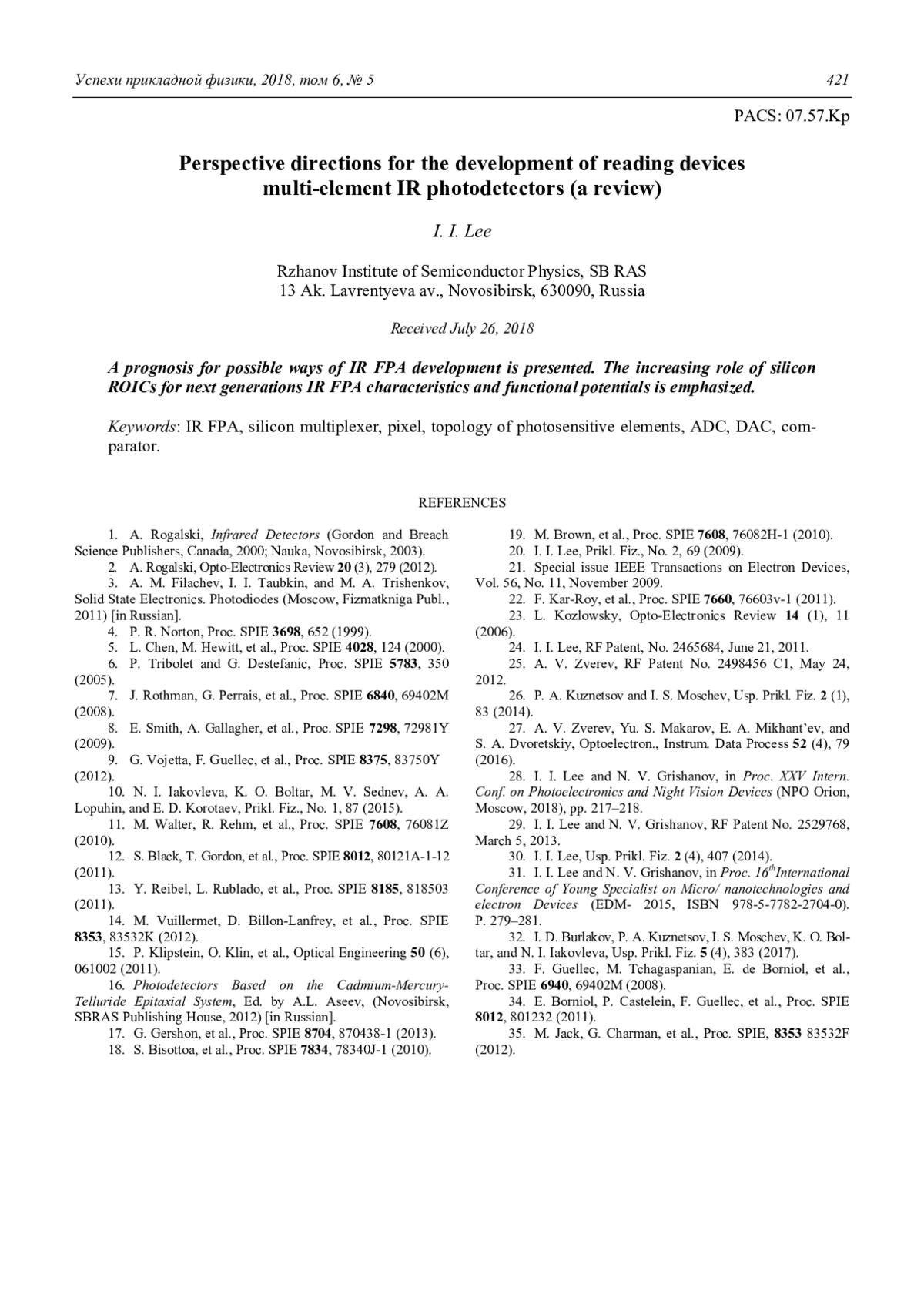 I. I. Lee Perspective directions for the development of reading devices multi-element IR photodetectors (a review) 417