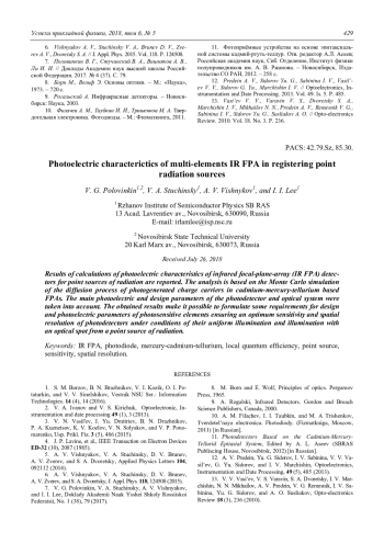 Половинкин В. Г., Стучинский В. А., Вишняков А. В., Ли И. И. Фотоэлектрические характеристики многоэлементных ИК фотоприемных устройств при регистрации точечных источников излучения 422