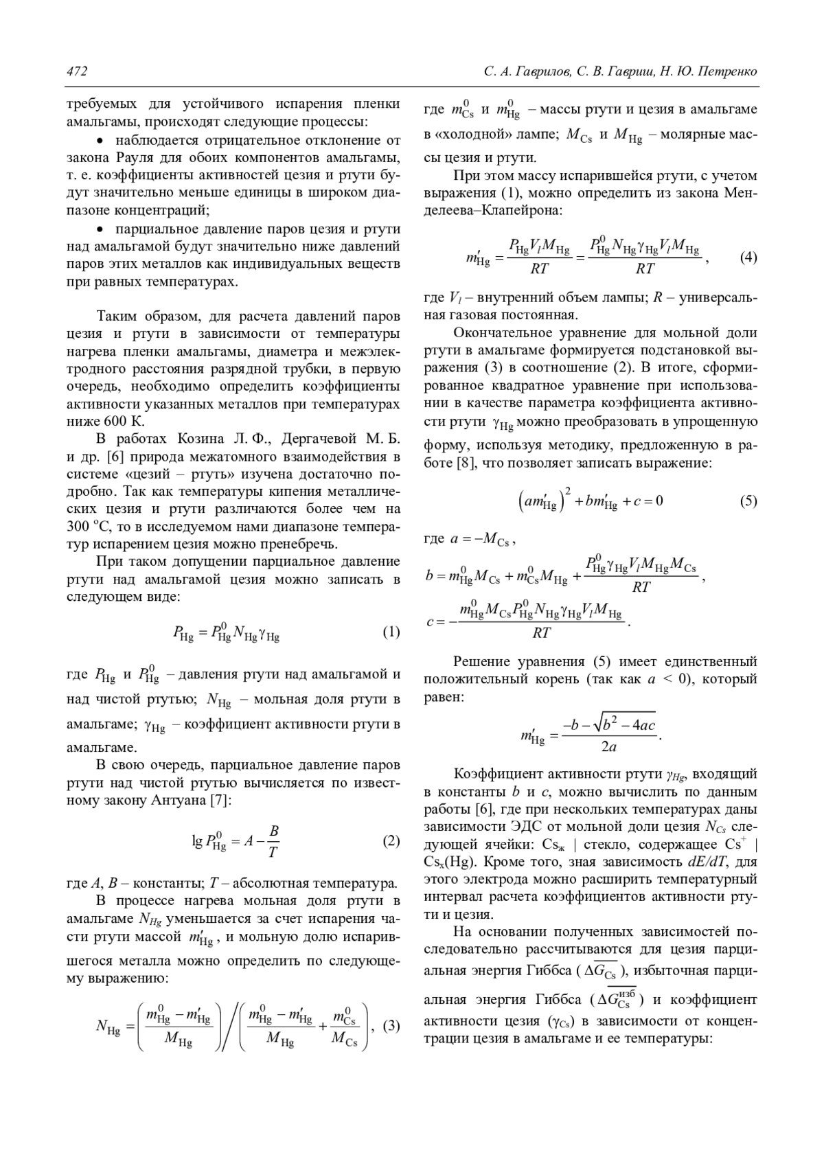 Гаврилов С. А., Гавриш С. В., Петренко Н. Ю. Термодинамика испарения амальгамы цезия в газоразрядных приборах 471