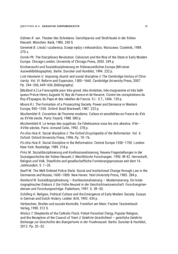 47. Prinz M. Sozialdisziplinierung und Konfessionalisierung. Neuere Fragestellungen in der Sozialgeschichte der frühen Neuzeit, in Westfälische Forschungen. 1992. No. 42. Herrschaft, Religion und Volk. Staatliche und gesellschaftliche Formierungsprozesse seit dem 16. Jahrhundert. S. 1-25.