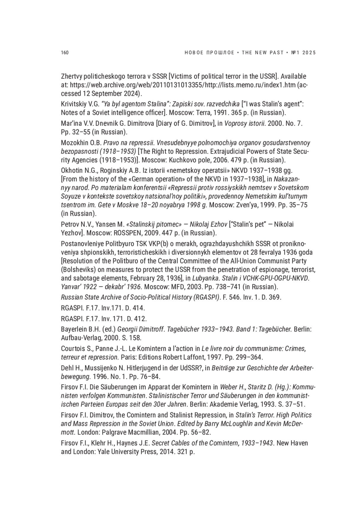 7. Марьина В.В. Дневник Г. Димитрова // Вопросы истории. 2000. № 7. С. 32-55.