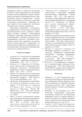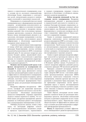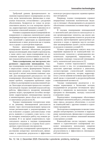 Статья: СОВРЕМЕННЫЕ ПОДХОДЫ К ПЛАНИРОВАНИЮ КАК ФАКТОР СТИМУЛИРОВАНИЯ ИННОВАЦИЙ В ПРОМЫШЛЕННОМ КОМПЛЕКСЕ (2025)